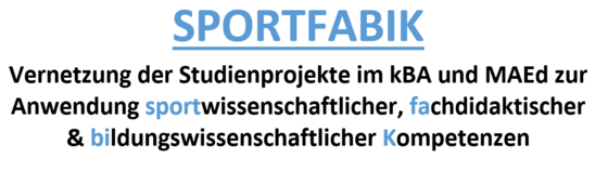 Das Ziel des Projekts SPORTFABIK ist es, die Studienprojekte, die die Studenten an der Bergischen Universität Wuppertal im kBA und MAEd absolvieren (1/6 des gesamten Studienvolumens), besser zu vernetzen. Dabei sollen die Angebote günstiger aufeinander abgestimmt und hinsichtlich ihrer Themen, Inhalte und Umfänge überprüft werden.